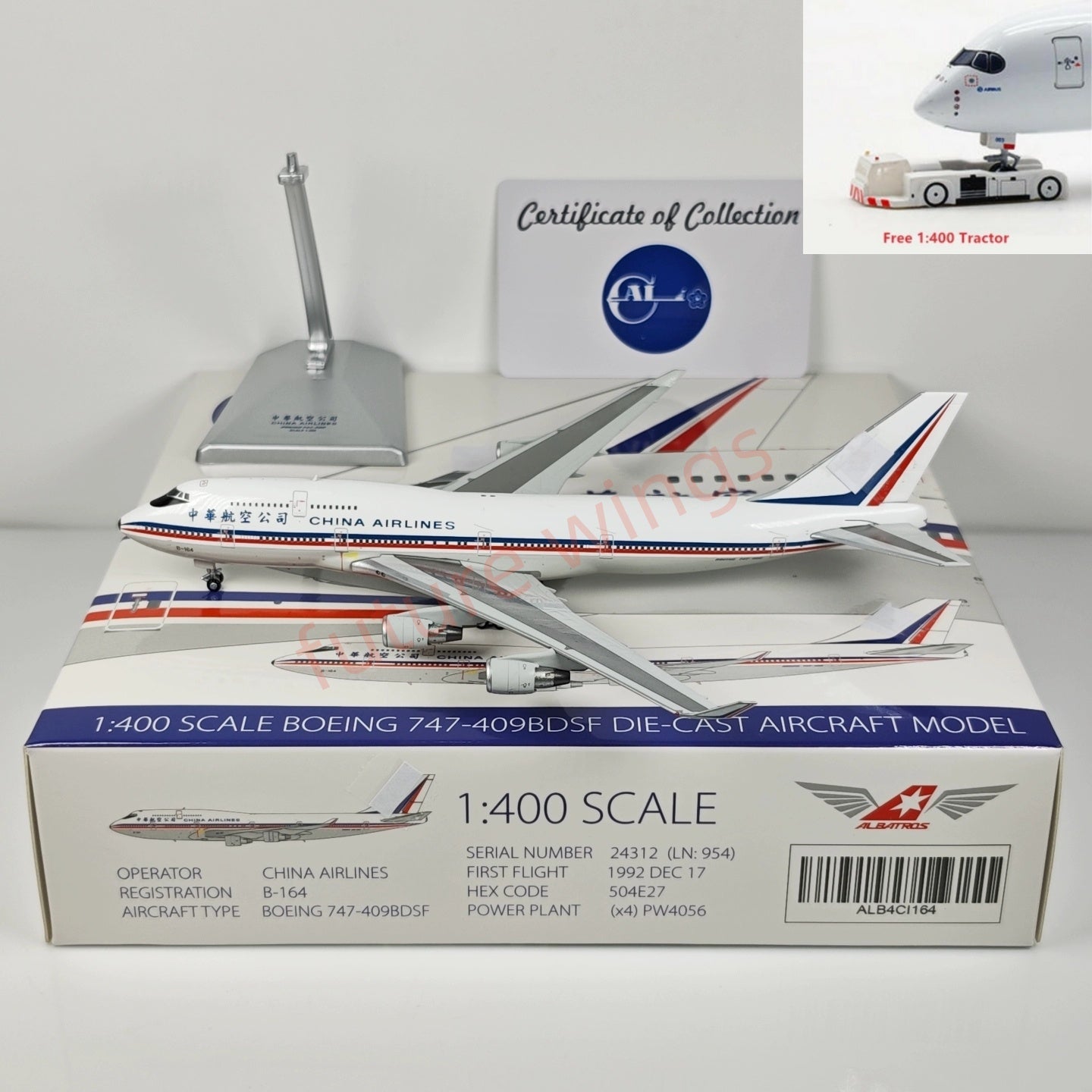 1:400 ALB ALB4CI164 China Airlines B747-409BDSF B-164 Aircraft Model+Free Tractor